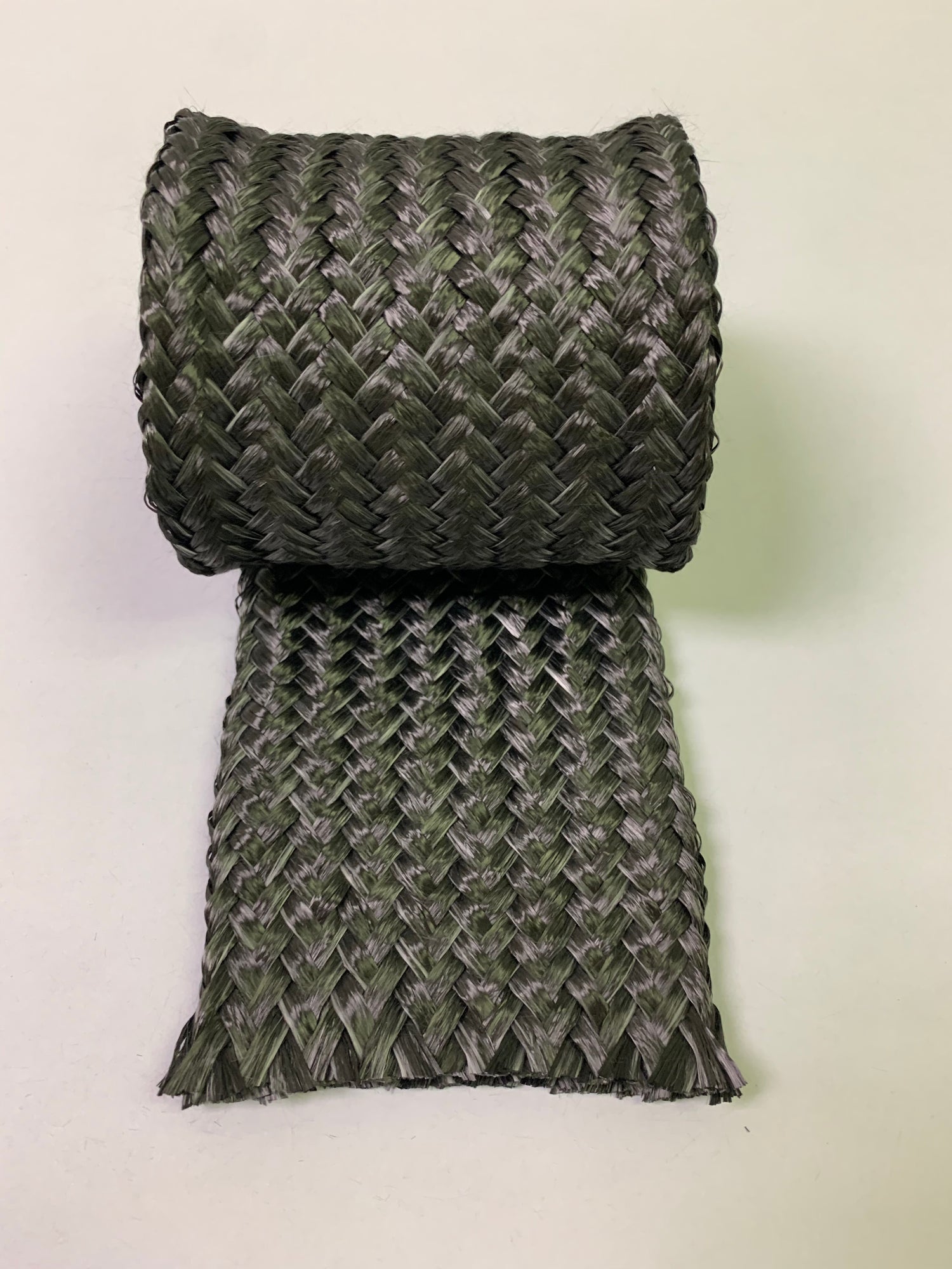 Read more...Biax or Bias Braid is a tubular fabric that is formed by opposing helical tows that are interwoven. It is expandable and contractable. It can be used to as reinforcement in a composite of variabl cross section and or radius. It easily conforms to these variations.
